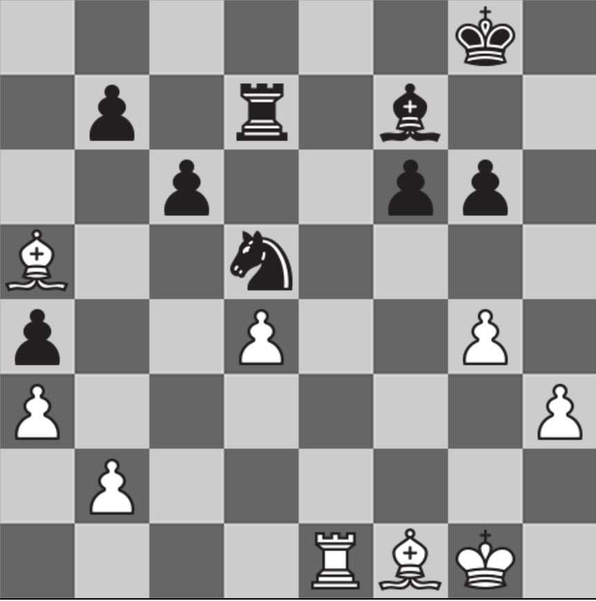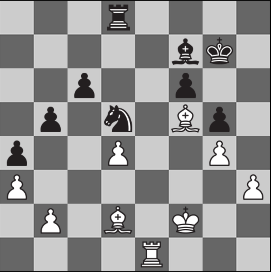 31.Bd2 g5 32.Bd3 Kg7 33.Bc2 b5 34.Bf5 Rd8 35.Kf2 Bg6 36.Be6 Bf7 37.Bf5