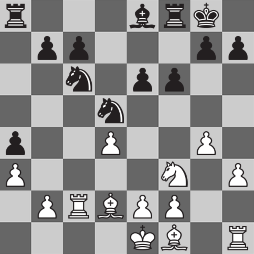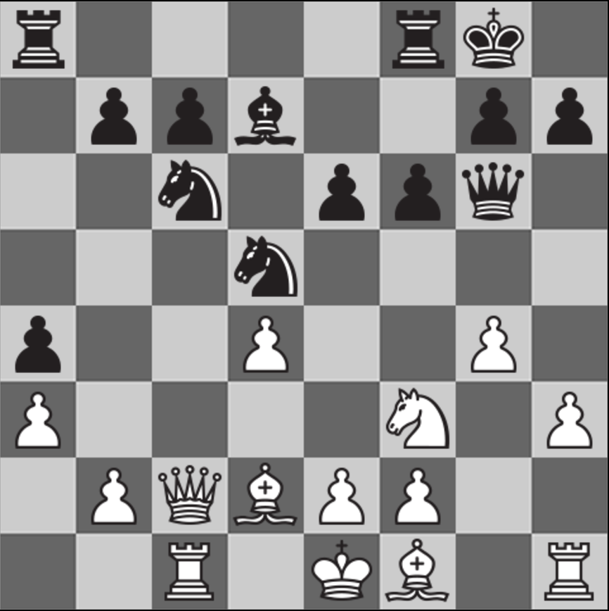 11.Bb5 Bg4 12.Ng1 f6 13.h3 Be6 14.exf6 Rxf6 15.Bxc6 bxc6 16.Nge2 Qd6 17.0-0 Raf8 18.Rae1
