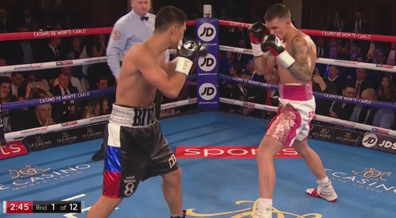 Ефимович тоже попадает про британцу, но заметно, что его удары не настолько увесисты, как у соперника.