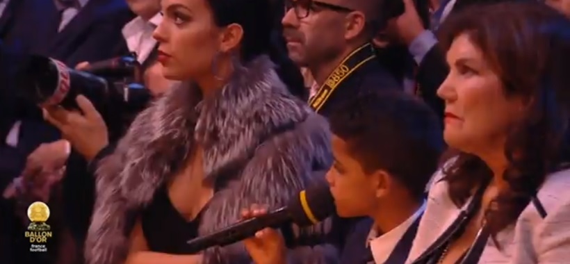 На сцену поднялся старший сын Роналду, тот самый, который болеет не за отца, а... за Месси!