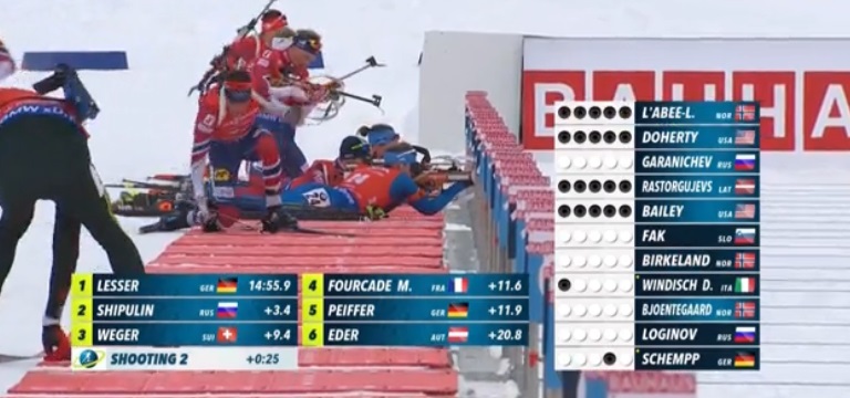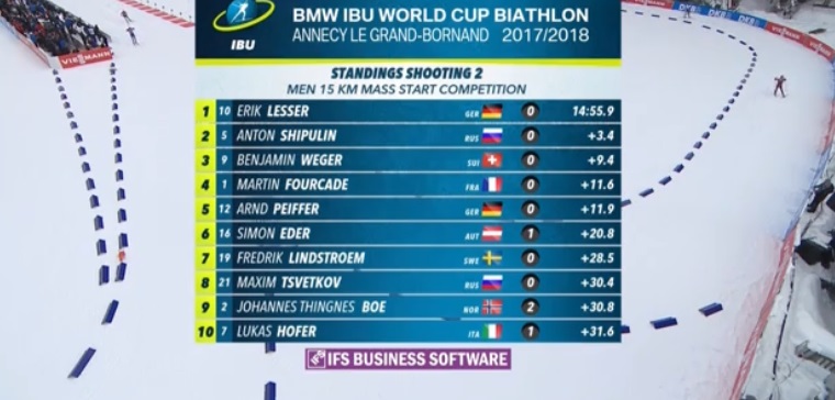 Как из автомата отстреливают биатлонисты. А никаких изменений в тройке лучших: Лессер, Шипулин, Фуркад.
