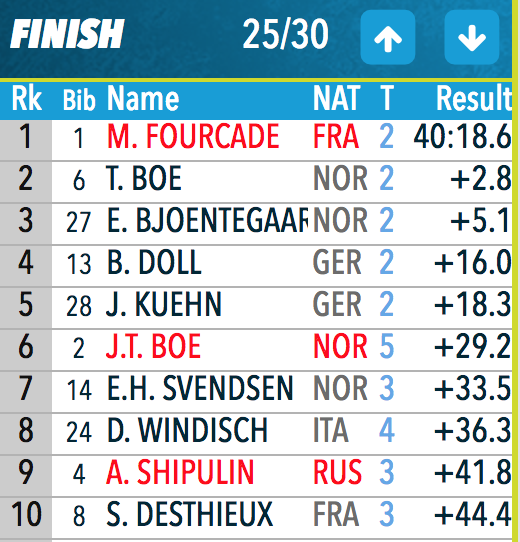Бё мажет дважды и уходит на два круга. Точны Дестье, Фуркад, Шипулин, Свендсен и многие другие.