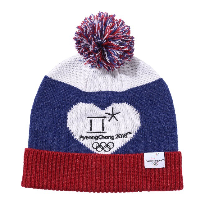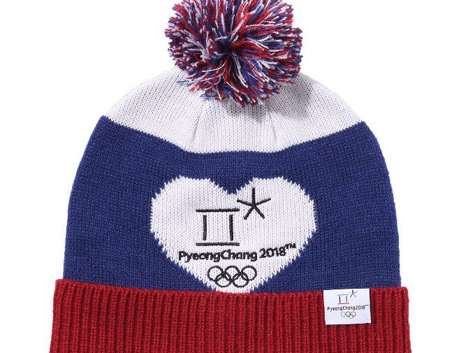 Шапка «Пхенчхан-2018», выполненная в цветах российского флага — синем, белом и красном. Ее стоимость составляет 18 000 вон (около 950 рублей).