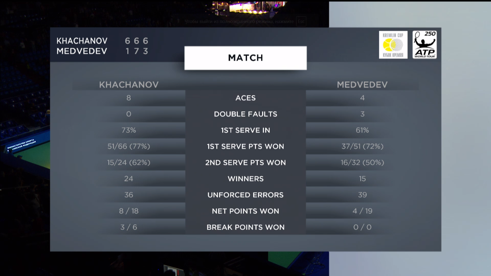 А теперь неожиданную ошибку допускает Хачанов. 30:15.