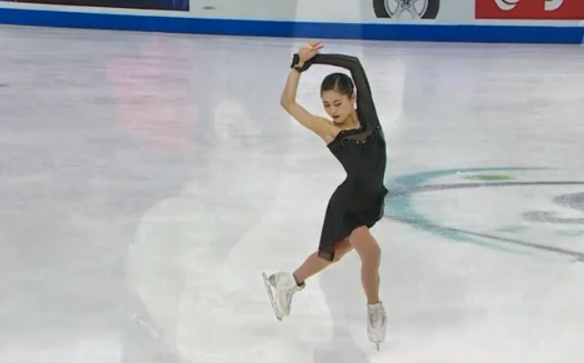 Хорошо начинает спортсменка, которая выступает в легком черном платье . Прыжки без серьезных ошибок. Вот только каскад — двойной аксель + ойлер + тройной сальхов оказался немного испорчен из-за последнего элемента. Много недокрутов ставят судьи все равно. Жестко по отношению к атлетам ведут себя арбитры сегодня.