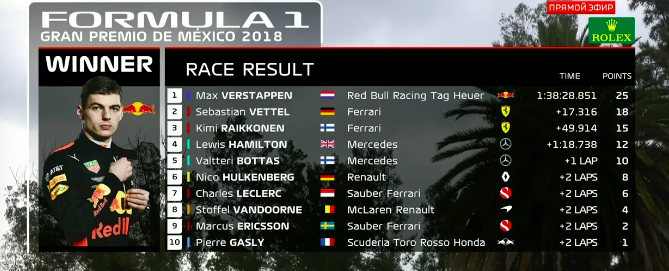 Все, Ферстаппен — победитель Гран-при Мексики! Эта вторая победа в сезоне и пятая в карьере у пилота «Ред Булла»!