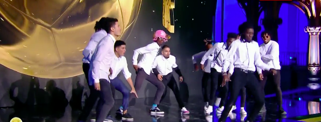 Перед финальной церемонией зрители наслаждаются танцевальным номером. Вручение «Золотого мяча» от France Football — это настоящее шоу!