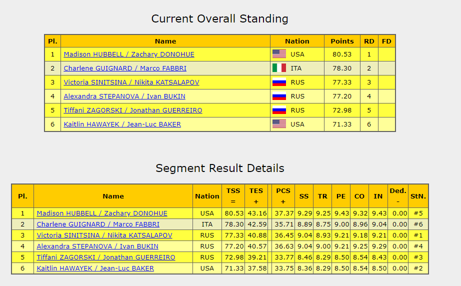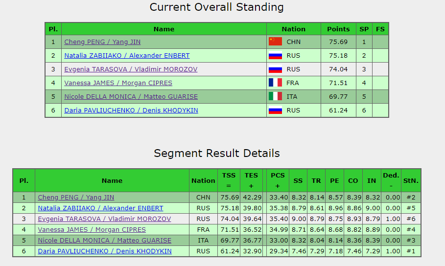 Вот так выглядит таблица после короткой программы у спортивных пар.