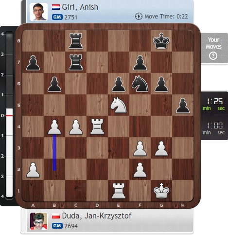 Упорная партия у Дуды с Гири. Пока сложно кому-то отдать предпочтение.