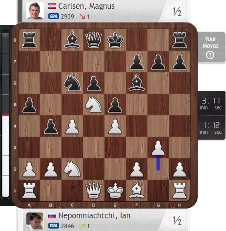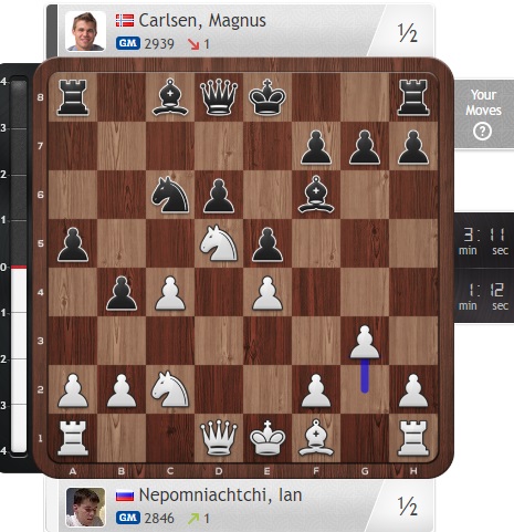 Магнус тем временем собирается пощупать черного короля.