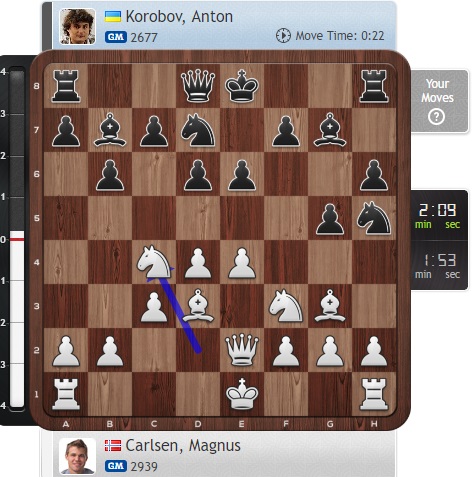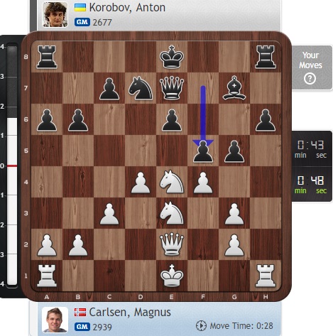 Напряженная игра идет у Карлсена с Коробовым.