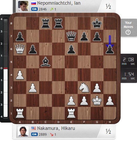 Очень красивая партия, и Накамура здорово отзащищался, а закончилось все вечным шахом — ничья!