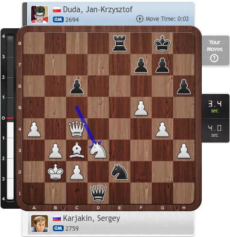 Ой-ой, Дуда чуть не попал под «вилку», а затем Карякин зевнул ладью, и позиция окончательно запуталась!