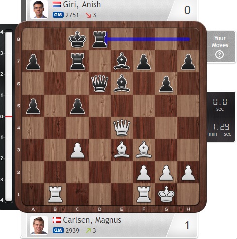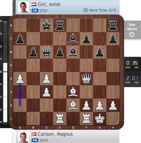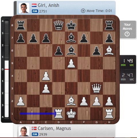 Надо отдать должное Гири — он подвыровнял игру, но ценой цейтнота. Все равно у Карлсена отличные шансы на победу.