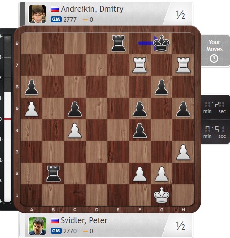 Подписали Андрейкин и Карякин мировую в очень сложной и интересной позиции, ну а Непомнящий проиграл, это было уже очевидно.