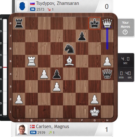 Немного смягчил позицию Цыдыпов, и получивший пространственный перевес Карлсен тут же набросился на него коршуном!