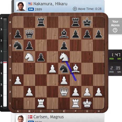 Какой же Магнус уверенный и агрессивный! Очень перспективный ход конем на е5!
