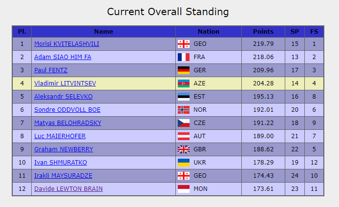 179,75 — эх, почти два балла выигрывает Фернандес у Самарина! Но это значит, что Александр в любом случае будет в тройке.