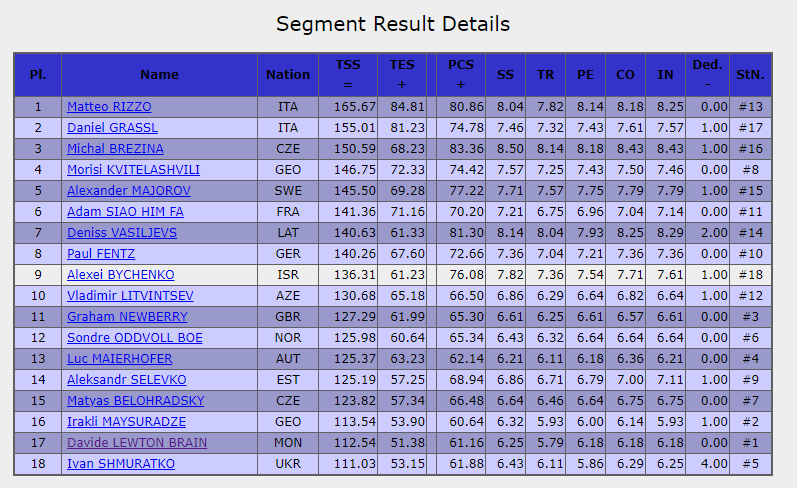 Не было у Брэйна тройных прыжков кроме тулупа. Этого, конечно, недостаточно для борьбы за высокие места. 112,54 балла получает он (173,61 в целом).