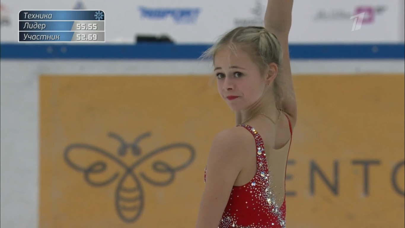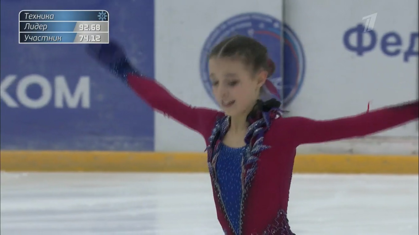 Самая юная участница этого турнира очень сильное впечатление произвела! Чистый прокат, а ведь у нее еще много возможностей для роста. Например, имели место недокруты.