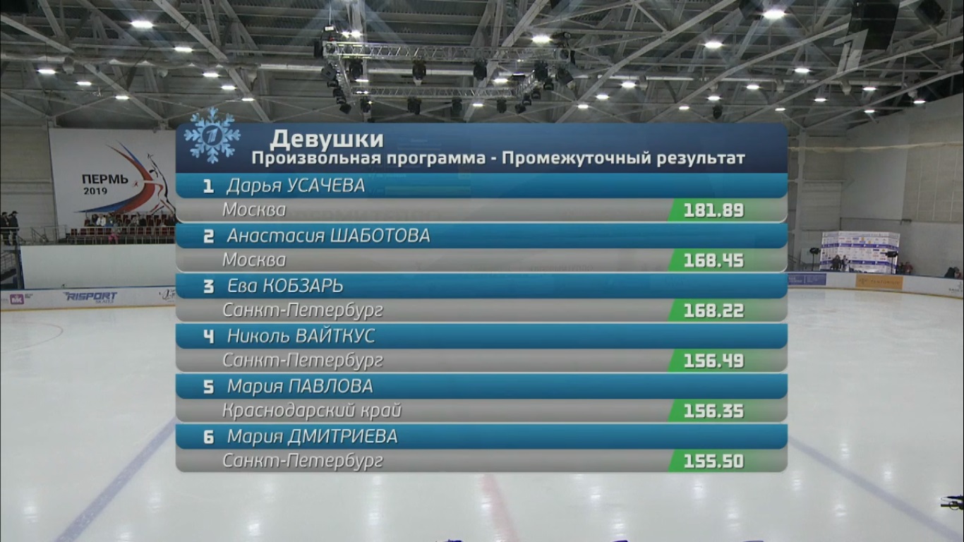 В первой части соревнований главной неожиданностью стал провал Александры Трусовой, действующей чемпионкой страны и мира среди юниоров, а также серебряного призера взрослого чемпионата страны нынешнего сезона. Она чисто откатала первую половину программы, но упала с каскада тройной лутц — тройной риттбергер, что снизило его стоимость, а также привело к потере балла за само падение. Теперь Александре необходимо чисто прыгать свою сложнейшую программу с четверными прыжками. Будет интересно.