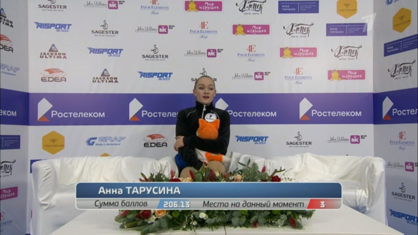 Тарусина получает за произвольную 134,62, что дает в сумме 206,13. Она третья на данный момент.