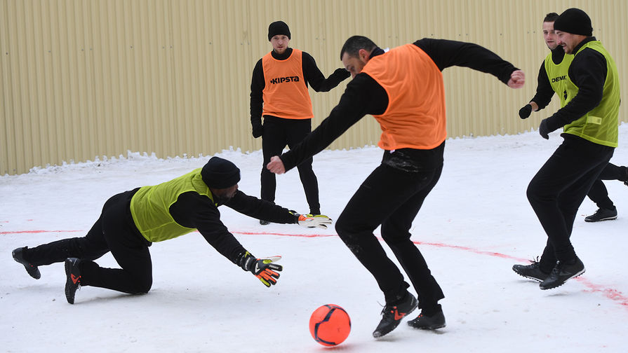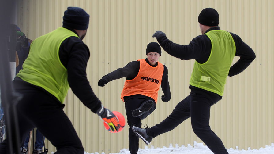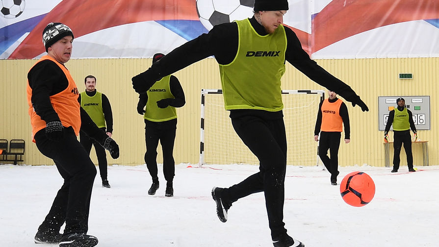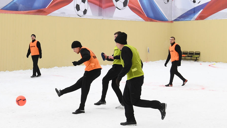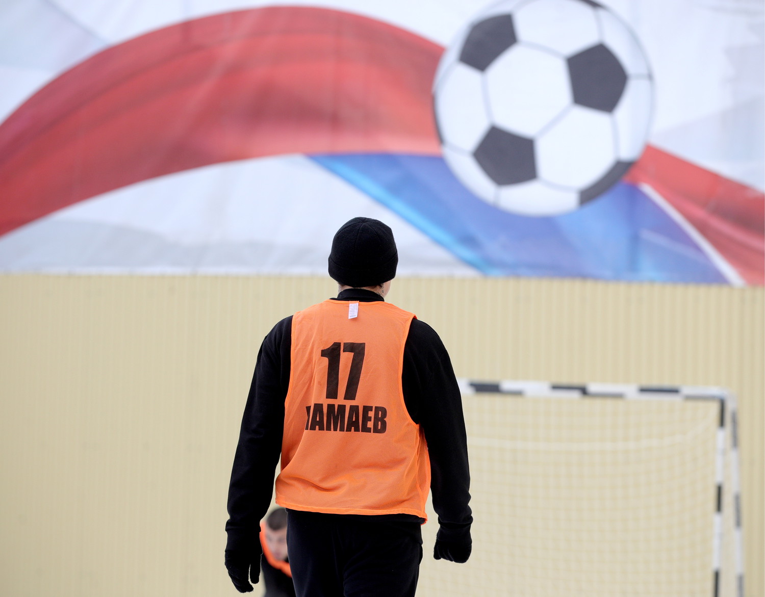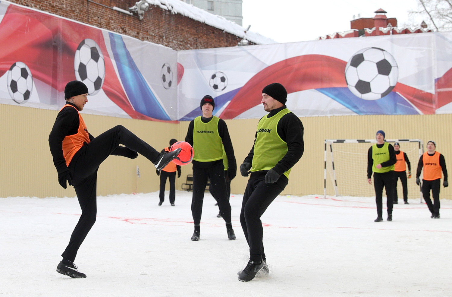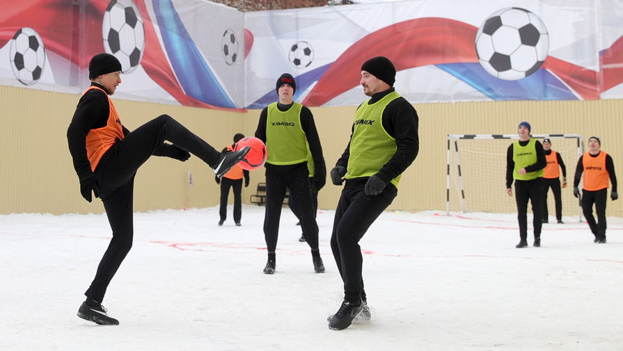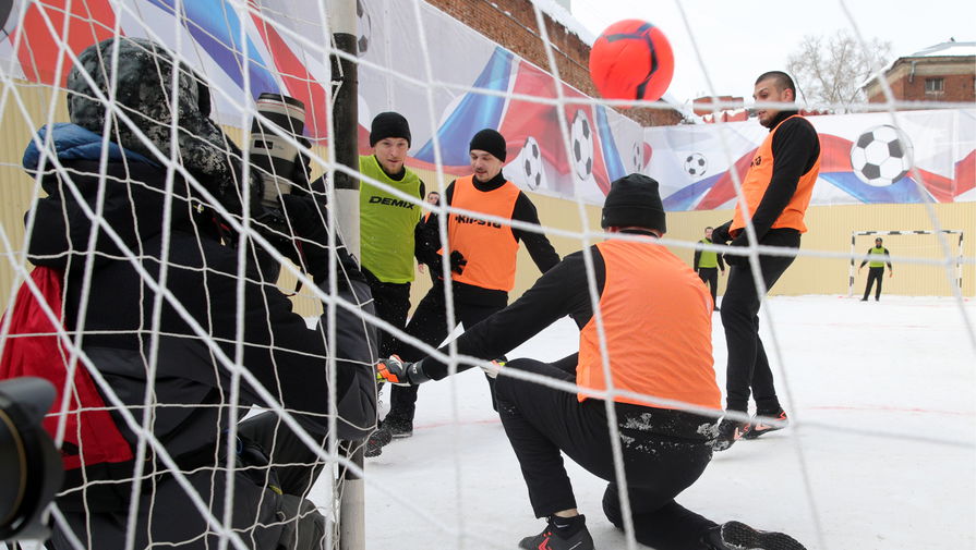 Сергей Бобылев/ТАССКстати, специально для этой встречи на плацу сделали красивую разметку красным цветом. Футболисты играют оранжевым мячом, который лучше всего видно на снегу. Также в СИЗО завезли неплохие ворота и украсили стены большими плакатами с изображением футбольного мяча.