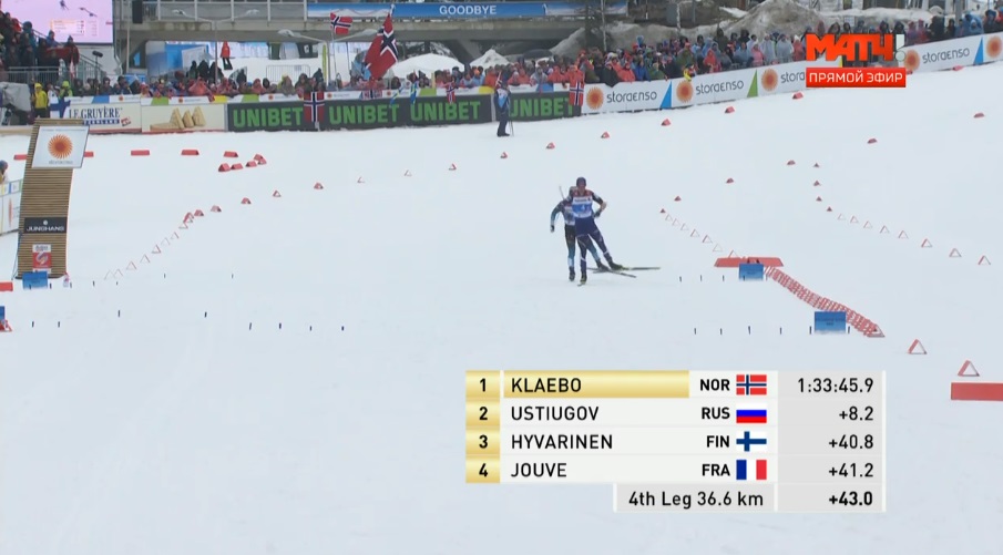 Финский и французский преследователи далеко. Они будут биться за бронзу. Ну а Устюгов и Клэбо разыграют между собой золото и серебро. Это очевидно.