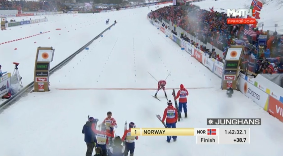 Клэбо финишировал. НОРВЕГИЯ — ЧЕМПИОН!