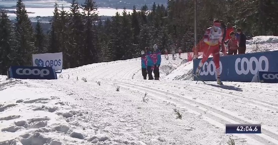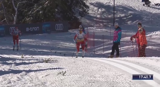 Йохауг не поехала на смену лыж. Непряева отстала снова, но группа преследовательниц отстала еще больше. А вот Пярмякоски снова включилась в борьбу!
