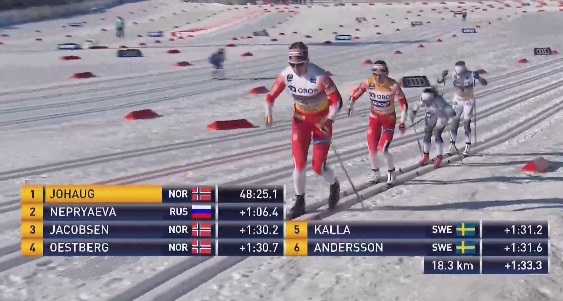 Ого, Наталья Непряева отыграла пару секунд у Йохауг, а у общей группы — 6-7 секунд! Здорово!