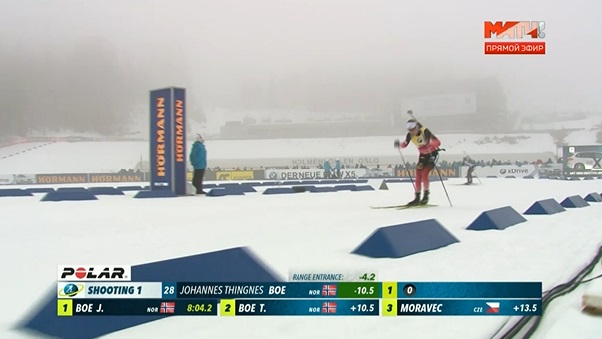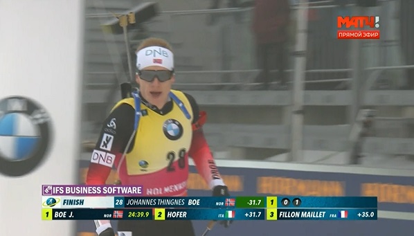 Йоханнес Бё все же один промах допустил на стойке. Но будет все равно бороться за победу.