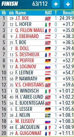Йоханнес Бё, безусловно, выигрывает гонку! Но каков же задел перед пасьютом! Логинов, например, уступил 52 секунды.