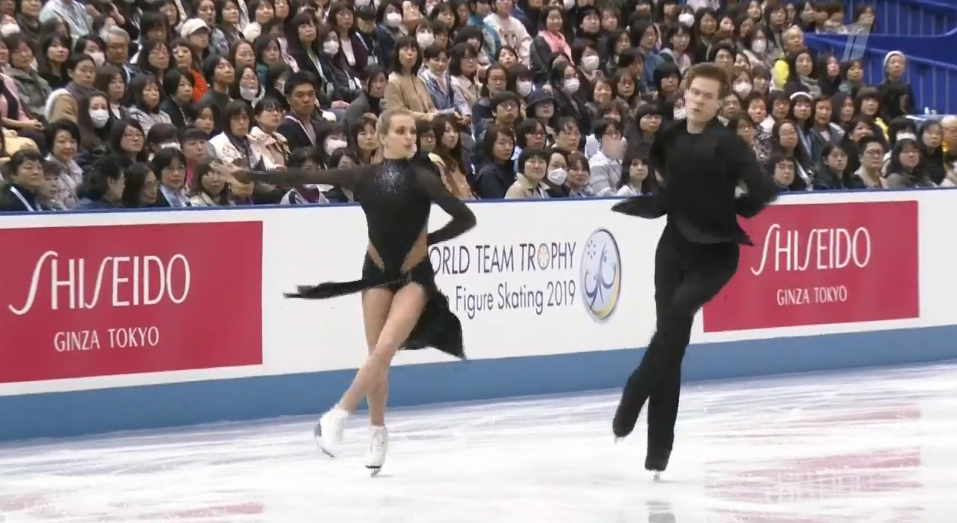Немного недотянули на твизлах. Четвертый уровень поставили судьи Мисато, а вот у Тимоти только третий. Слишком медленно сделано вращение. Во второй части программы показали танго, а также поддержку со сложным заходом и выходом. Довольны собой японцы.