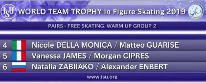 4. Николь Делла Моника – Маттео Гуаризе (Италия) 5. Ванесса Джеймс – Морган Сипре (Франция) 6. Наталья Забияко – Александр Энберт (Россия)