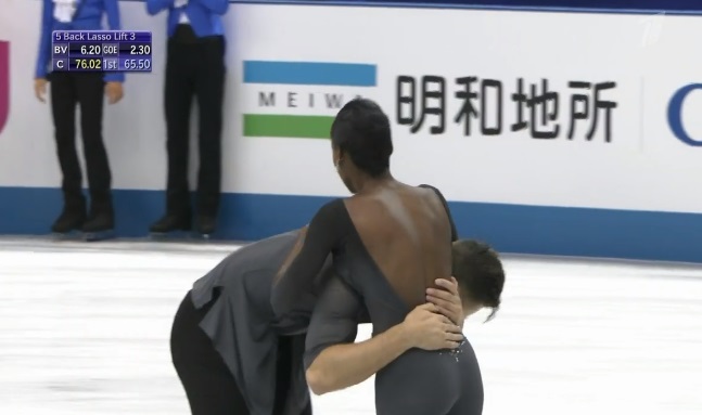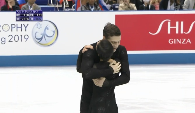 Чуть облегчили контент наши ребята. Например, двойной сальхов вместо тройного. И плюсовали еще технику судьи чуть ниже, нежели французам. Это можно понять, но надо отметить, что наш дуэт свои элементы выполнял тоже образцово чисто! В общем, отличный прокат, но Джеймс и Сипре уступят.