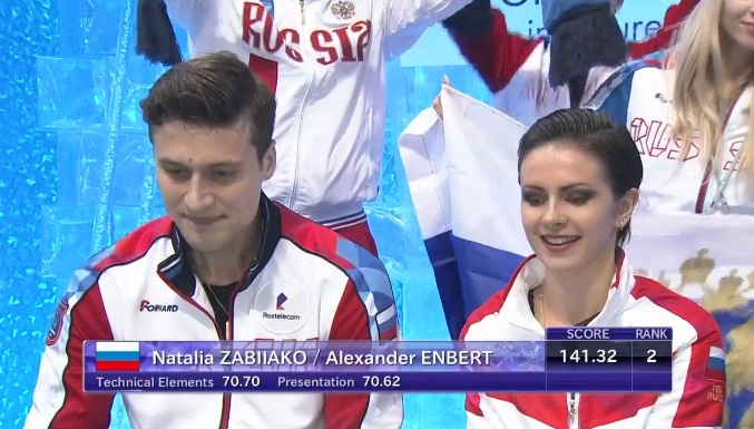 141,32 — это второй результат вслед за французами. 11 очков приносят России Забияко и Энберт.