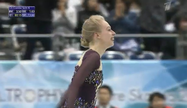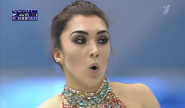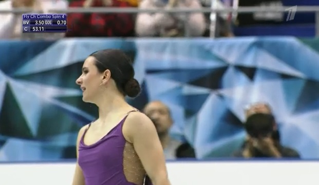 Не получилось выступление у француженки. Изменилась у нее по ходу сезона фигура, что плохо повлияло на технику, которая и без того была не самой лучшей. Замкнутый круг. 107,71 — только третья сейчас.