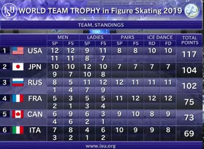 РИА НовостиВот таким получился командный чемпионат мира по фигурному катанию. Сборная США стала чемпионом, японцы вторые, а российская команда выиграла бронзу. Спасибо, что были с нами и до новых встреч. Трансляцию вел Александр Седов.