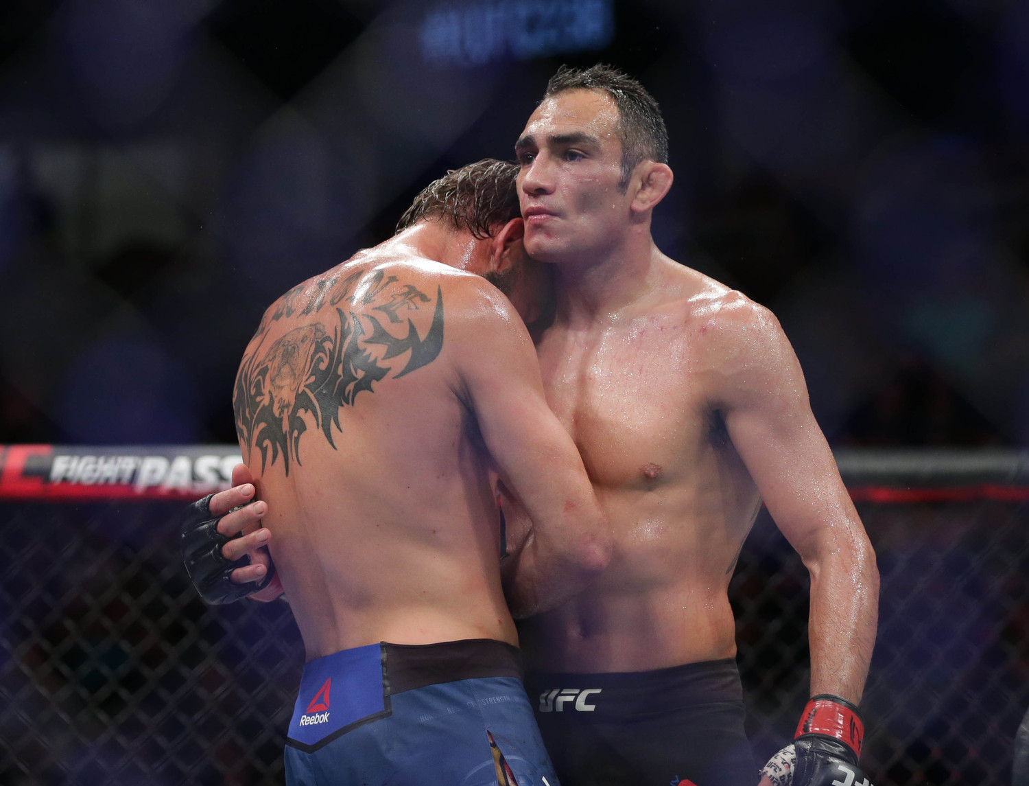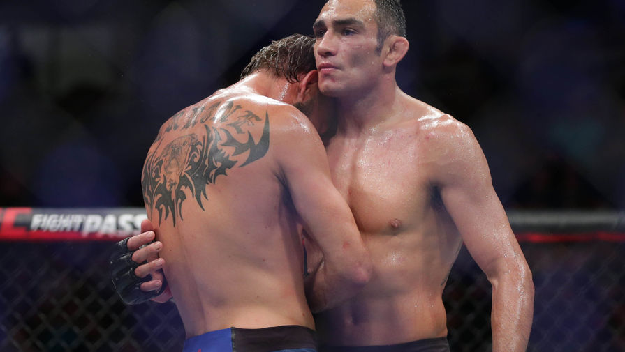 Бойцы Дональд Серроне (слева) и Тони Фергюсон (справа) после боя на турнире UFC 238