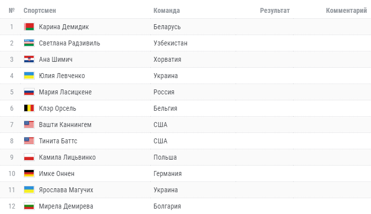 Все-таки заметно, что главной соперницей Ласицкене сегодня будет Левченко. Другим совсем уже трудно.