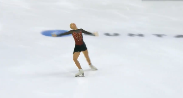 Пока мужской голос надрывается под медлительные аккорды гитары, финка штампует прыжки один за другим. Серьезная ошибка была только одна, причем в самом начале выступления — Сааринен допустила степ-аут на первом прыжке в каскаде тройной сальхов + тройной тулуп и не стала присоединять второй.