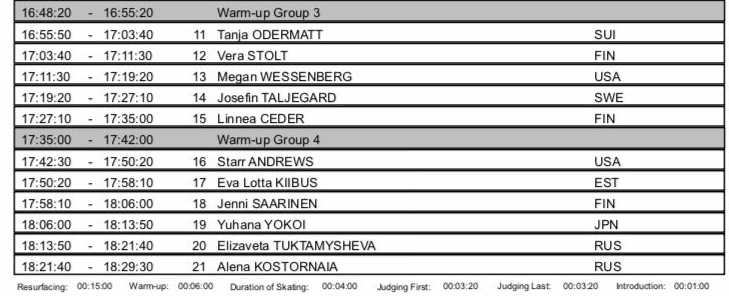 Расписание выступления двух последних разминок на Finlandia Trophy, участницы которых способы в теории побороться за медали, выглядит так. Россиянки — самые последние как гвоздь программы.
