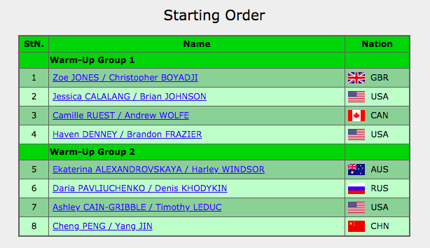 Замыкают первую разминку американцы Хэвен Денни / Брэндон Фрейзер! Они выбрали для короткой программы «Quidam» из «Цирка Дю Солей».