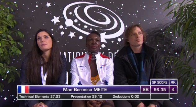 Двойной аксель сделала француженка, а вот в каскаде 3 флип — 3 тулуп с ошибкой приземлила второй прыжок, и тройной лутц с минусом вышел. Ну и, как всегда, вращения и дорожки у Мейте не получились максимально сложными. Зажигательно, но недостаточно чисто она катается.