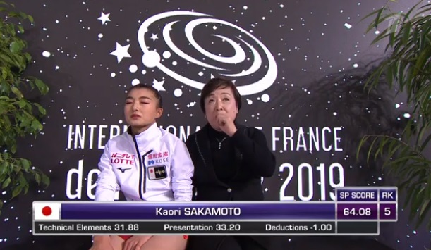 Каскад 3 флип — 3 тулуп хорошо сделала, а вот с двойного акселя упала Сакамото. И после этого тройной риттбергер тоже получился не самым удачным. Расстроена Сакамото. Она была одной из фавориток, но очень много ошибок. Не только в прыжках.