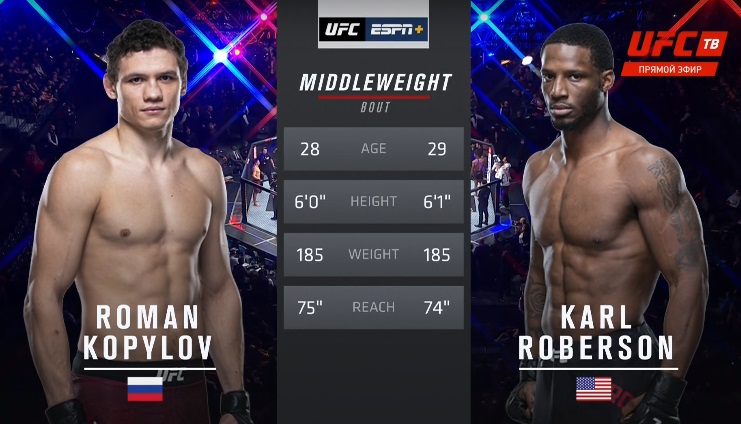 Следующими в октагон выйдут россиянин Роман Копылов и американец Брайан Роберсон.