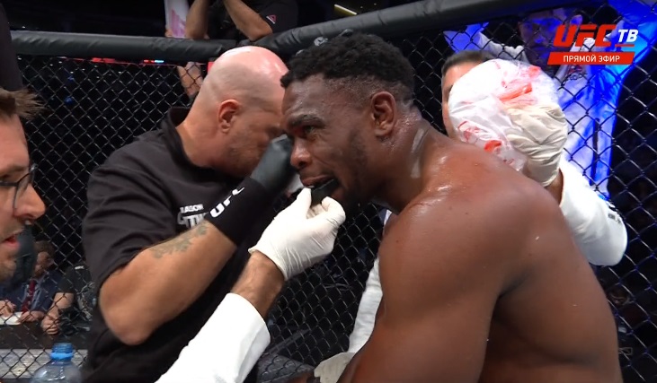 Копылов попал открытой ладонью в глаз Роберсону. Врач в октагоне.