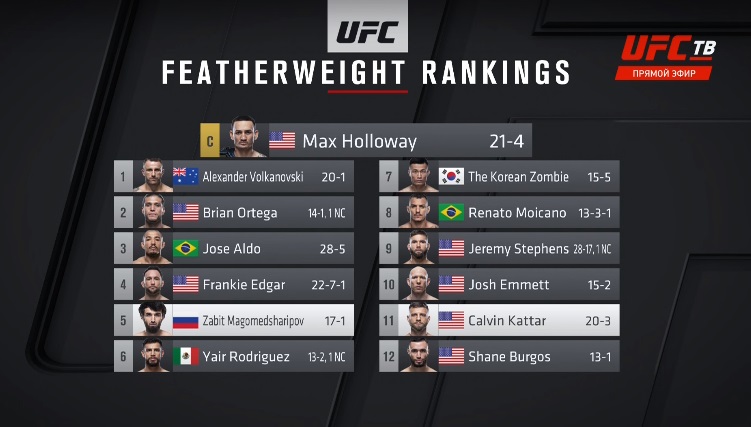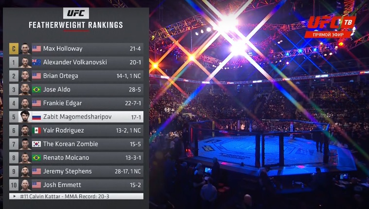 Нам пока анонсируют главный бой вечера, демонстрируя рейтинг полулегкого веса.