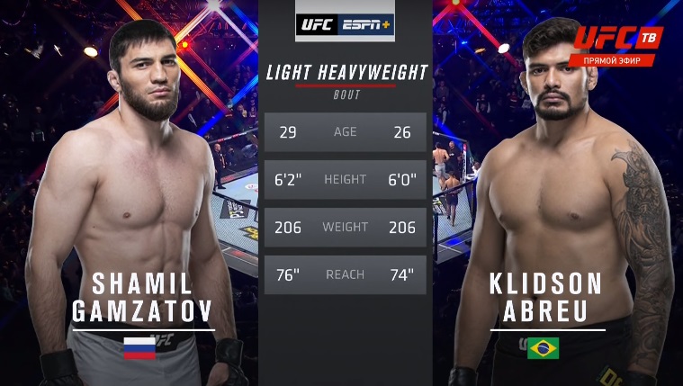 Шамиль Гамзатов и Клидсон Абреу начнут основной кард, где будет шесть боев.